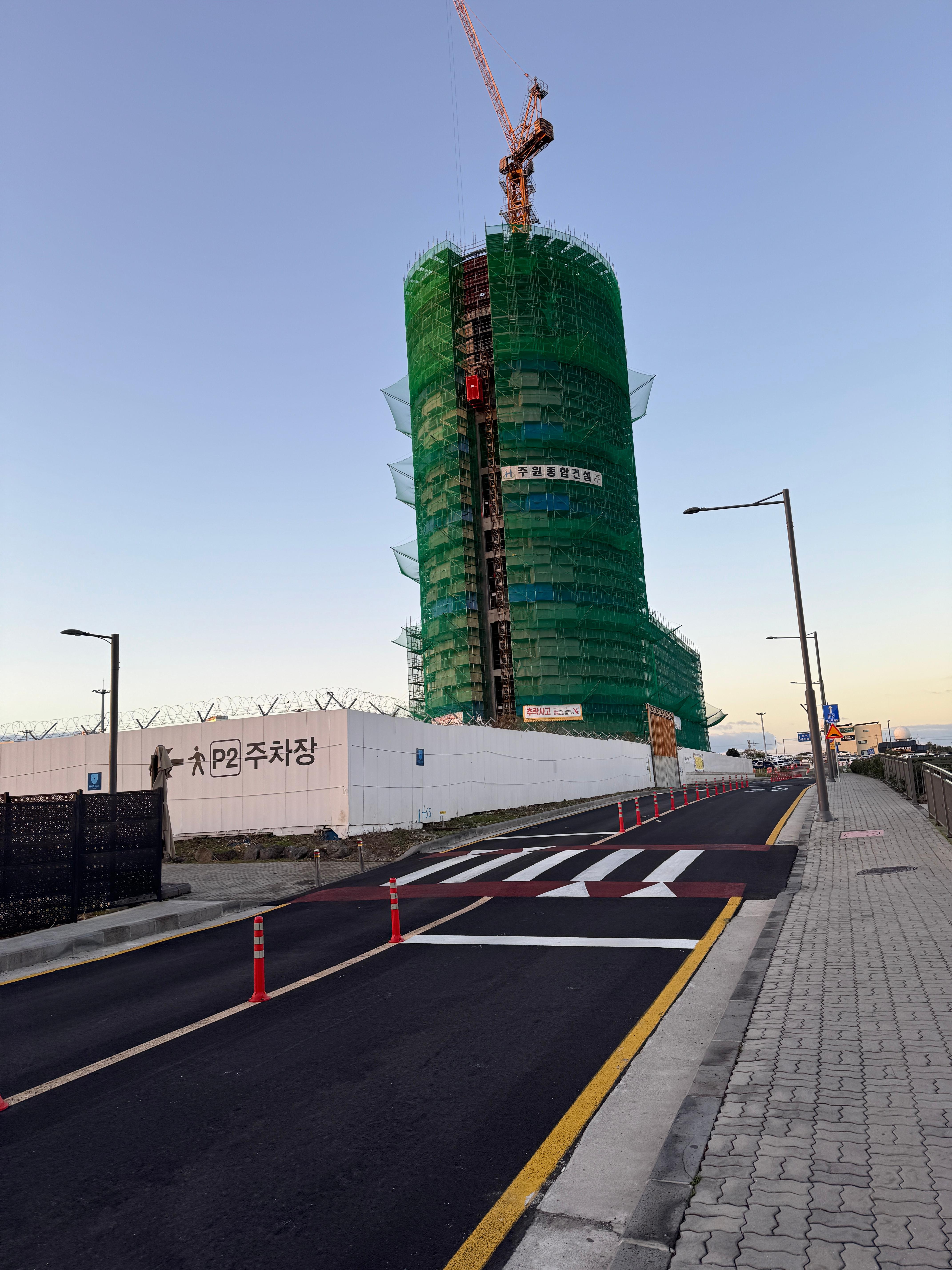 여기부터는 조금 위험한 이동 경로이다. 카트보관소를 지나서 가드레일 뒷편에 있는 도로를 "건너야" 한다. 장기주차장 출입구 이다보니 차량 이동이 많지는 않지만, 좌측과 우측을 유심히 살펴보고 건너야 한다.
